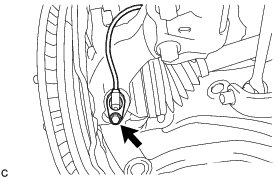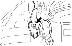 (c) Remove the bolt, front flexible hose and front speed sensor clamp together from the shock absorber assembly.