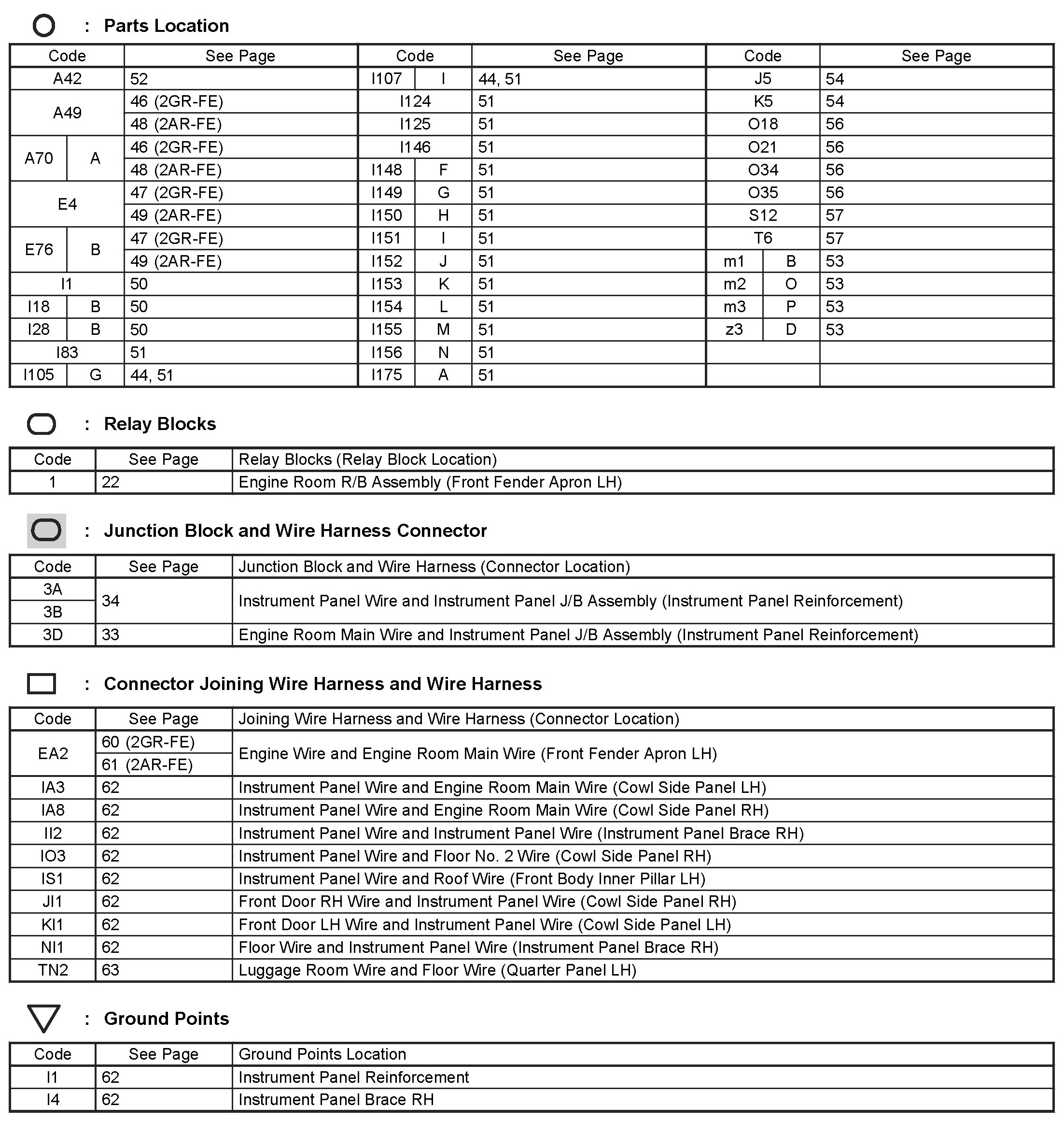 Locations: The locations of components, connectors, ground points, and splices referred to within these diagrams can be found at Vehicle Locations. Locations