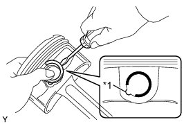 (a) Using a screwdriver, install a new piston pin hole snap ring at one end of the piston pin hole.
