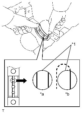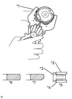 (b) Using a piston ring expander, install the compression ring as shown in the illustration.