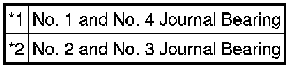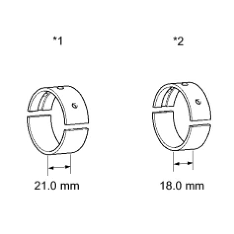 Main bearings come in widths between 18.0 mm (0.709 in.) and 21.0 mm (0.827 in.). Install the 21.0 mm (0.827 in.) bearings in the No. 1 and No. 4 cylinder block journal positions with the main bearing cap. Install the 18.0 mm (0.709 in.) bearings in the No. 2 and No. 3 positions.