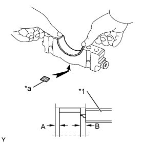 (2) Using a vernier caliper, measure the distance between the crankshaft bearing cap edge and the lower crankshaft bearing edge.
