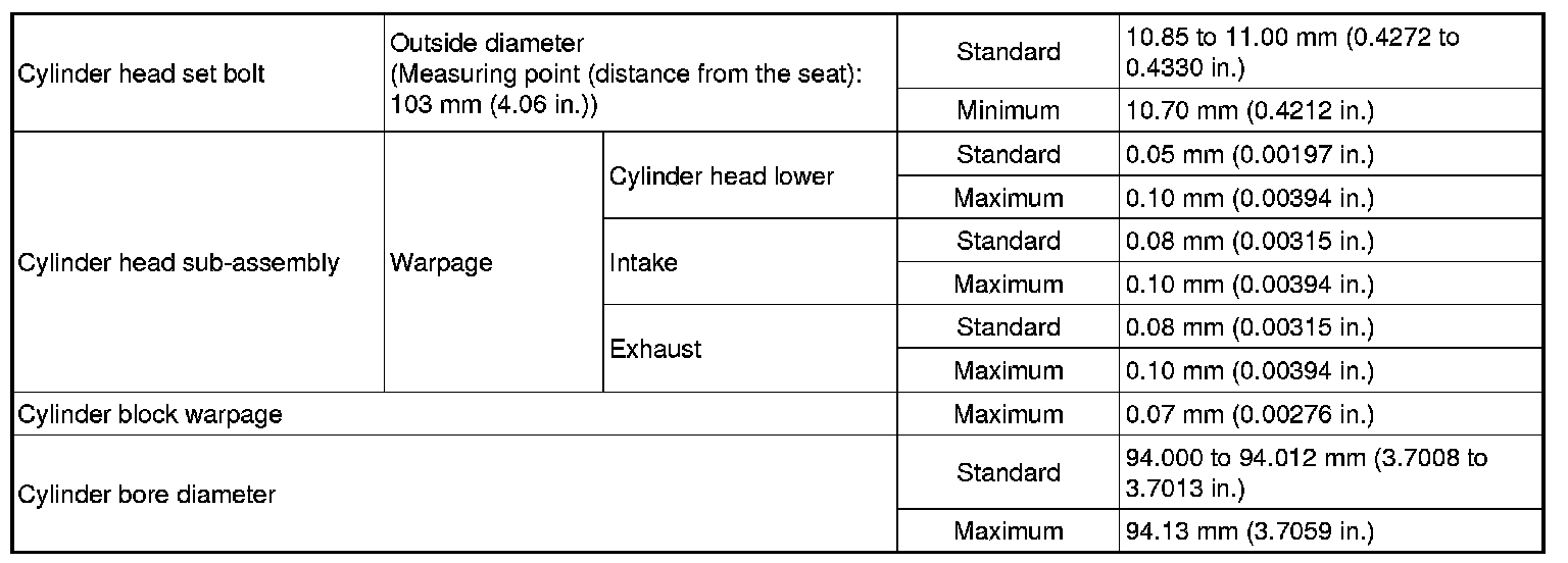 Cylinder Head Assembly: Specifications