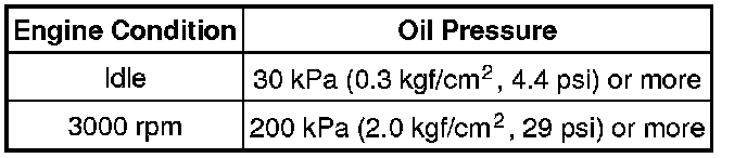 If the oil pressure is not as specified, check the oil pump Testing and Inspection.
