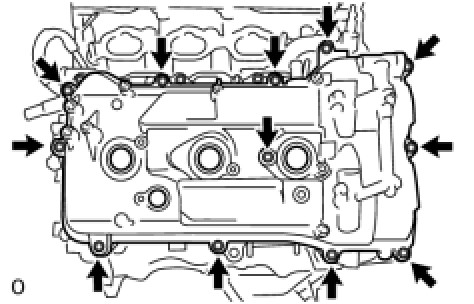 (a) Remove the 12 bolts, seal washer, cylinder head cover sub-assembly and cylinder head cover gasket.