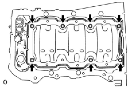 Be careful not to damage the contact surfaces of the oil pans.