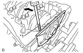(b) Insert the blade of the oil pan seal cutter between the oil pans. Cut through the applied sealer and remove the No. 2 oil pan sub-assembly.