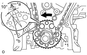 (a) Turn the crankshaft counterclockwise 10° to loosen the chain of the crankshaft timing sprocket.