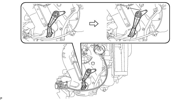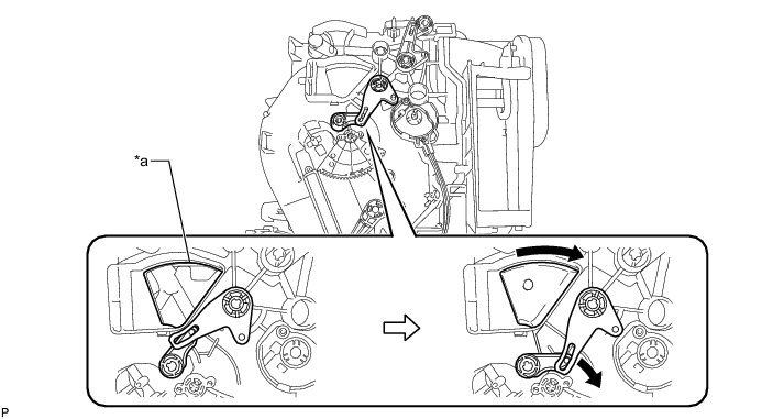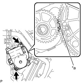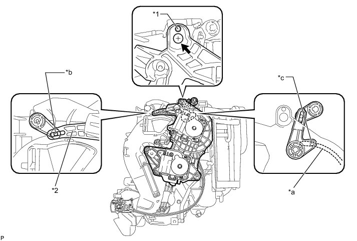 (a) Check that the slots, links and gears of the No. 1 air conditioning radiator damper servo sub-assembly are positioned in the correct orientation as shown in the illustration.