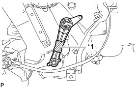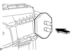 (i) Install the guide hole of the No. 1 air conditioning radiator damper servo sub-assembly to the guide pin of the air conditioning radiator assembly as shown in the illustration.