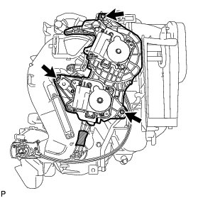 (q) Fully install the top screw, and then install the No. 1 air conditioning radiator damper servo sub-assembly with the 2 remaining screws.