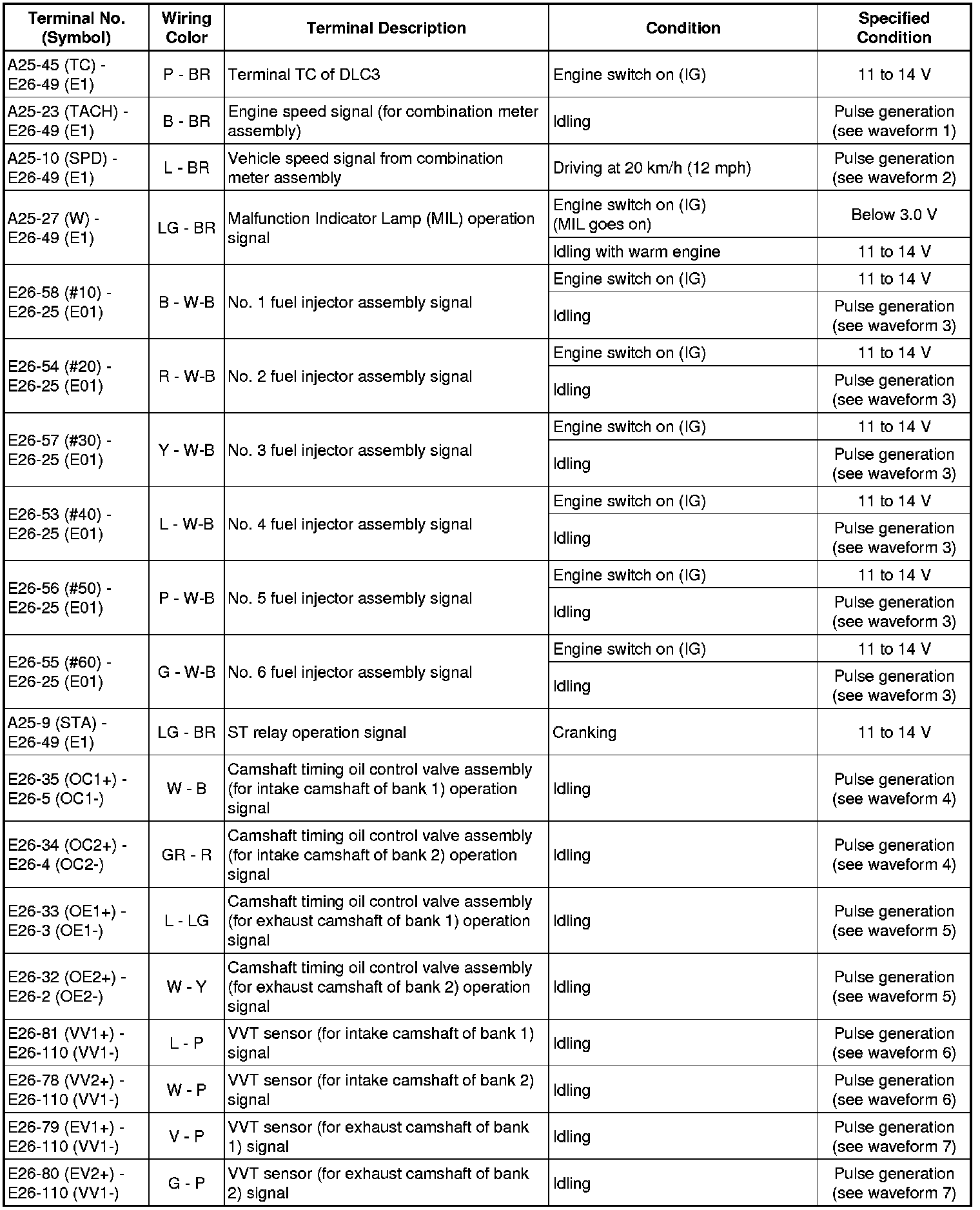 No. 1 (to No. 6) Fuel Injector Assembly Signal