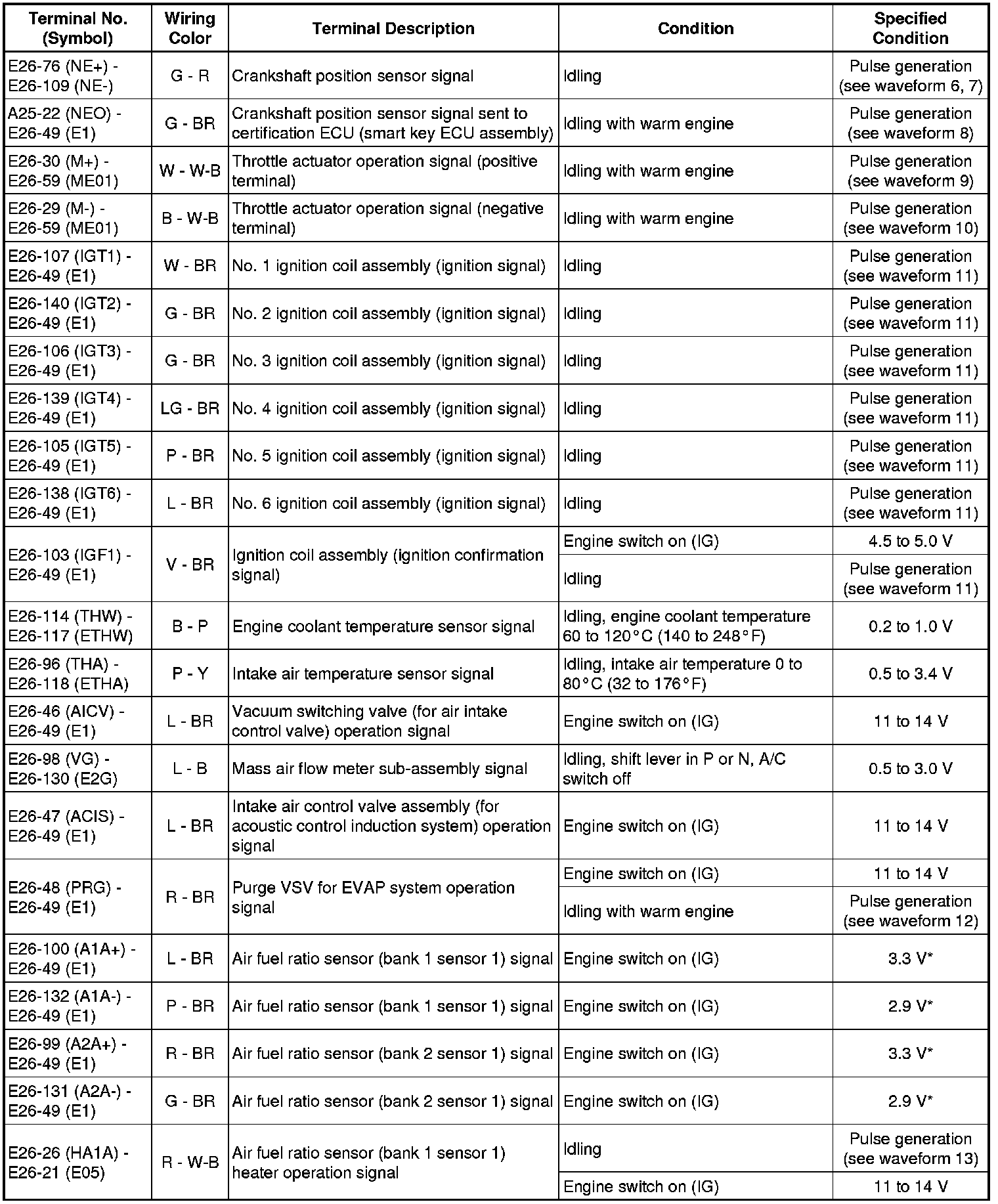 * The waveforms and amplitudes displayed differ slightly depending on the vehicle condition.