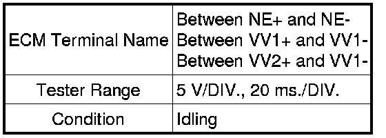 Crankshaft Position Sensor Signal and VVT Sensor (for Exhaust Camshaft) Signal