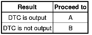 Look for output Diagnostic Trouble Codes (DTCs) (from the DTC checks) in the appropriate section's Diagnostic Trouble Code chart. Use the chart to determine the trouble area and the proper inspection procedure. A description of each of the chart's columns is shown in the table below.