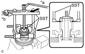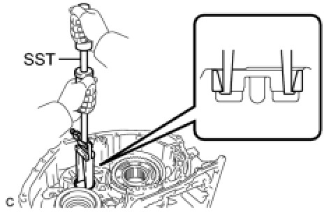 (a) Using SST, remove the counter driven gear rear tapered roller bearing outer race from the transaxle case.