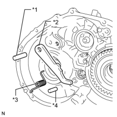 (a) Remove the spring, parking lock pawl pin, parking lock pawl shaft and parking lock pawl from the transaxle case.
