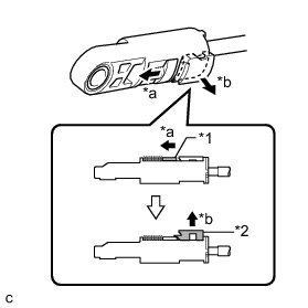 (h) Slide the slider of the transmission control cable in the direction indicated by the arrow and pull the lock piece outward.