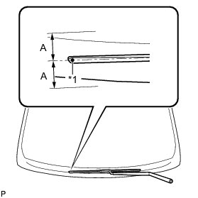 (c) Set the front wiper arm and blade assembly RH in the range shown in the illustration and then install the front wiper arm and blade assembly RH with the nut.