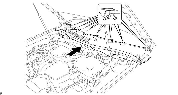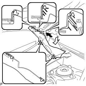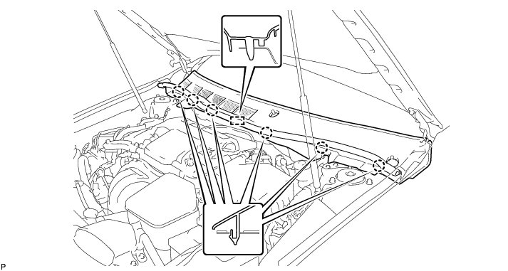 (b) Engage the 6 claws and guide to install the cowl top ventilator louver sub-assembly.