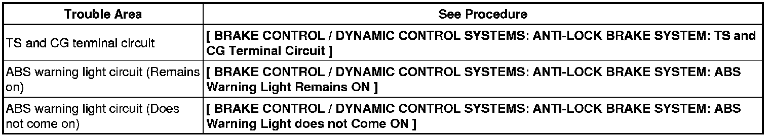 If the ABS warning light does not blink, inspect the TS and CG terminal circuit and ABS warning light circuit.