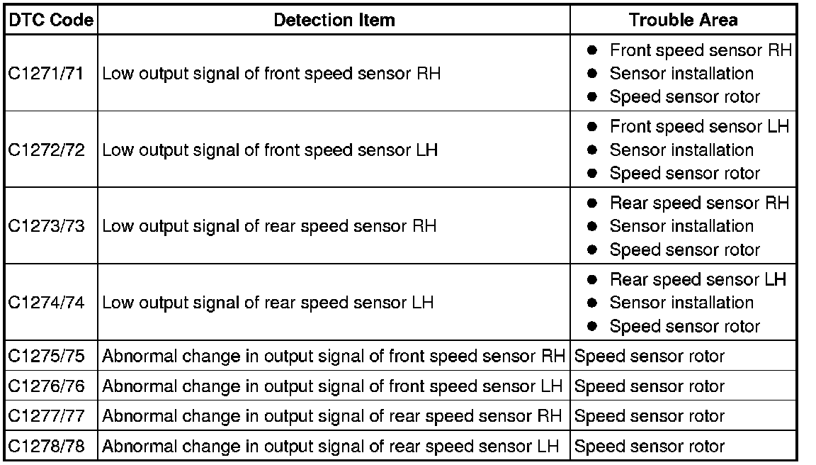 * During Test Mode (signal check), the skid control ECU records all DTCs of the sensor check function. By performing Test Mode (signal check), the codes are cleared if a normal condition is confirmed. The remaining codes are the codes where a malfunction was found.