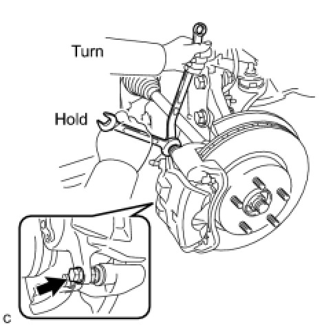 (a) Hold the front disc brake cylinder slide pin and remove the 2 bolts and disc brake cylinder assembly.