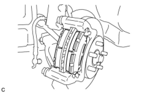 (a) Remove the 2 disc brake pads from the disc brake cylinder mounting.