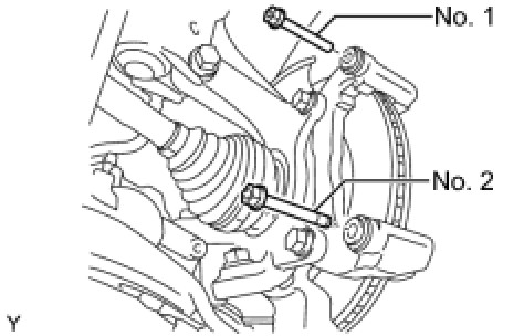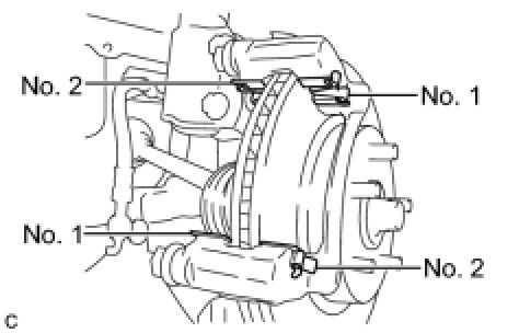 (a) Remove the No. 1 front disc brake cylinder slide pin and No. 2 front disc brake cylinder slide pin from the disc brake cylinder mounting.