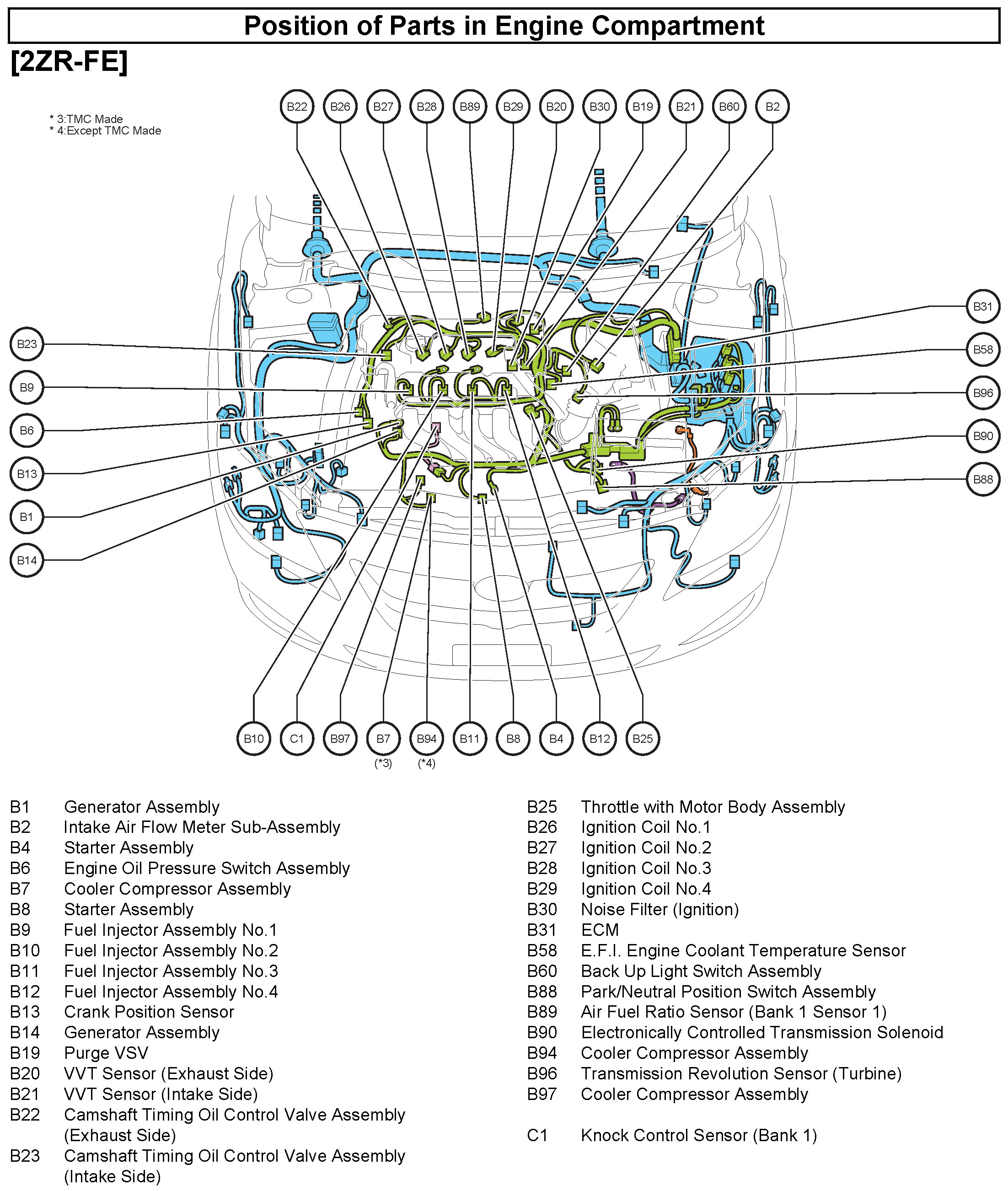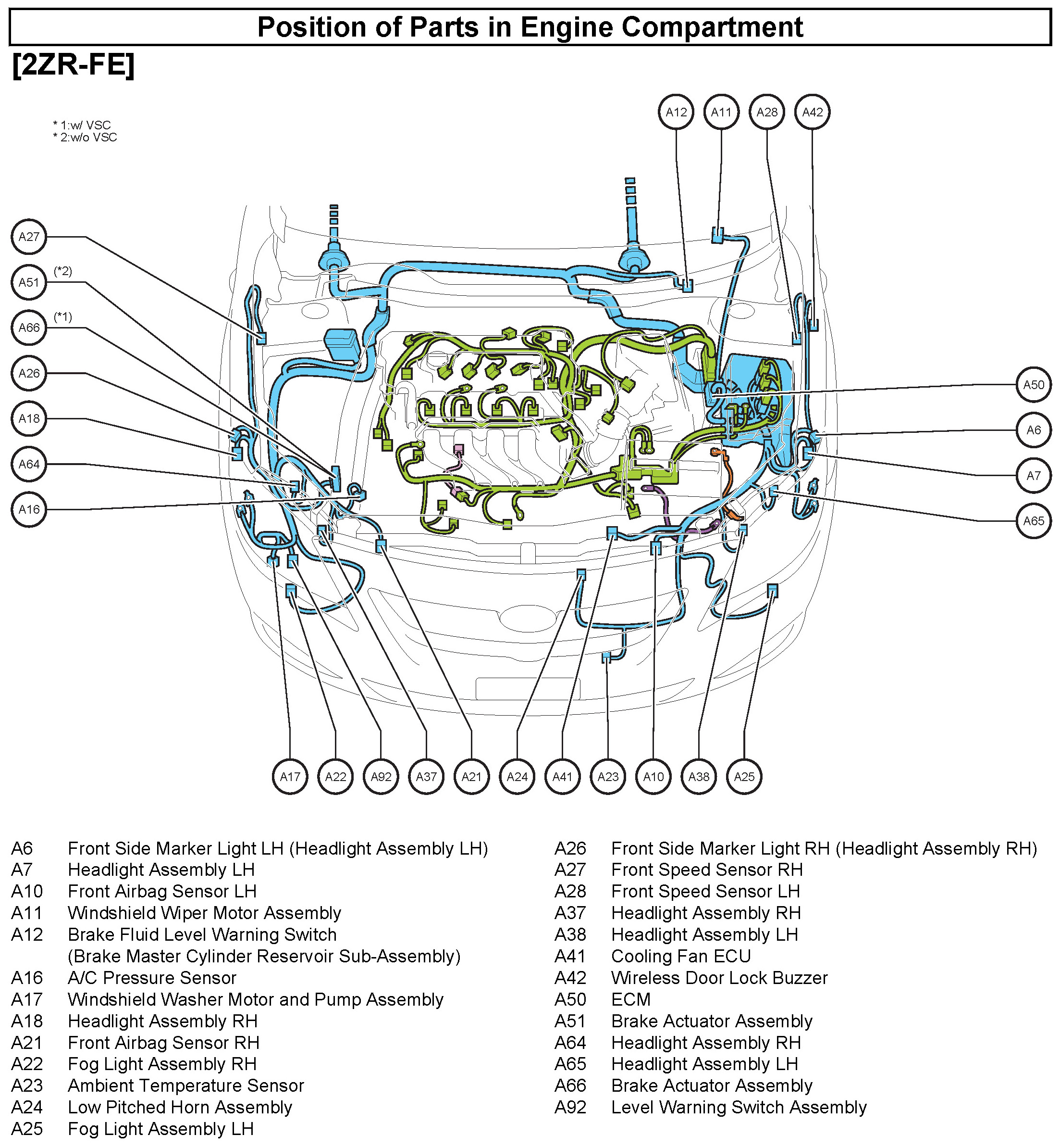 50 - Position of Parts in Engine Compartment: