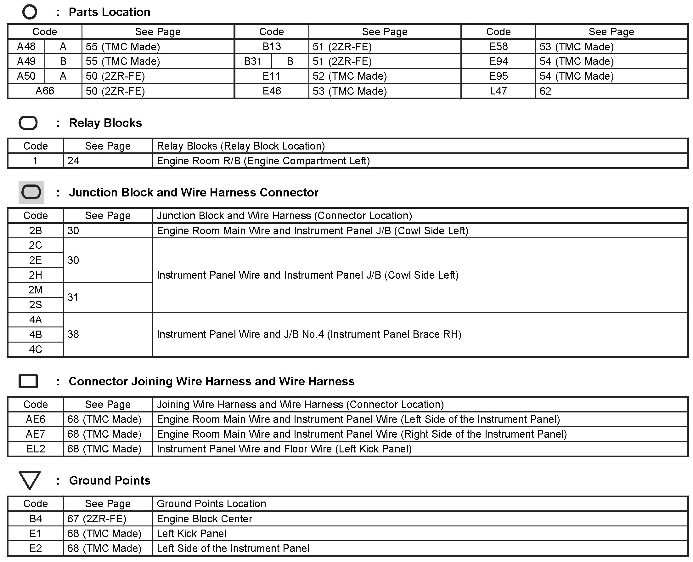 Locations: The locations of components, connectors, ground points, and splices referred to within these diagrams can be found at Vehicle Locations. Locations