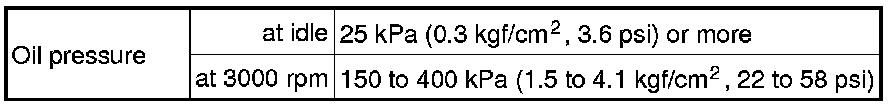 Engine Oil Pressure: Specifications