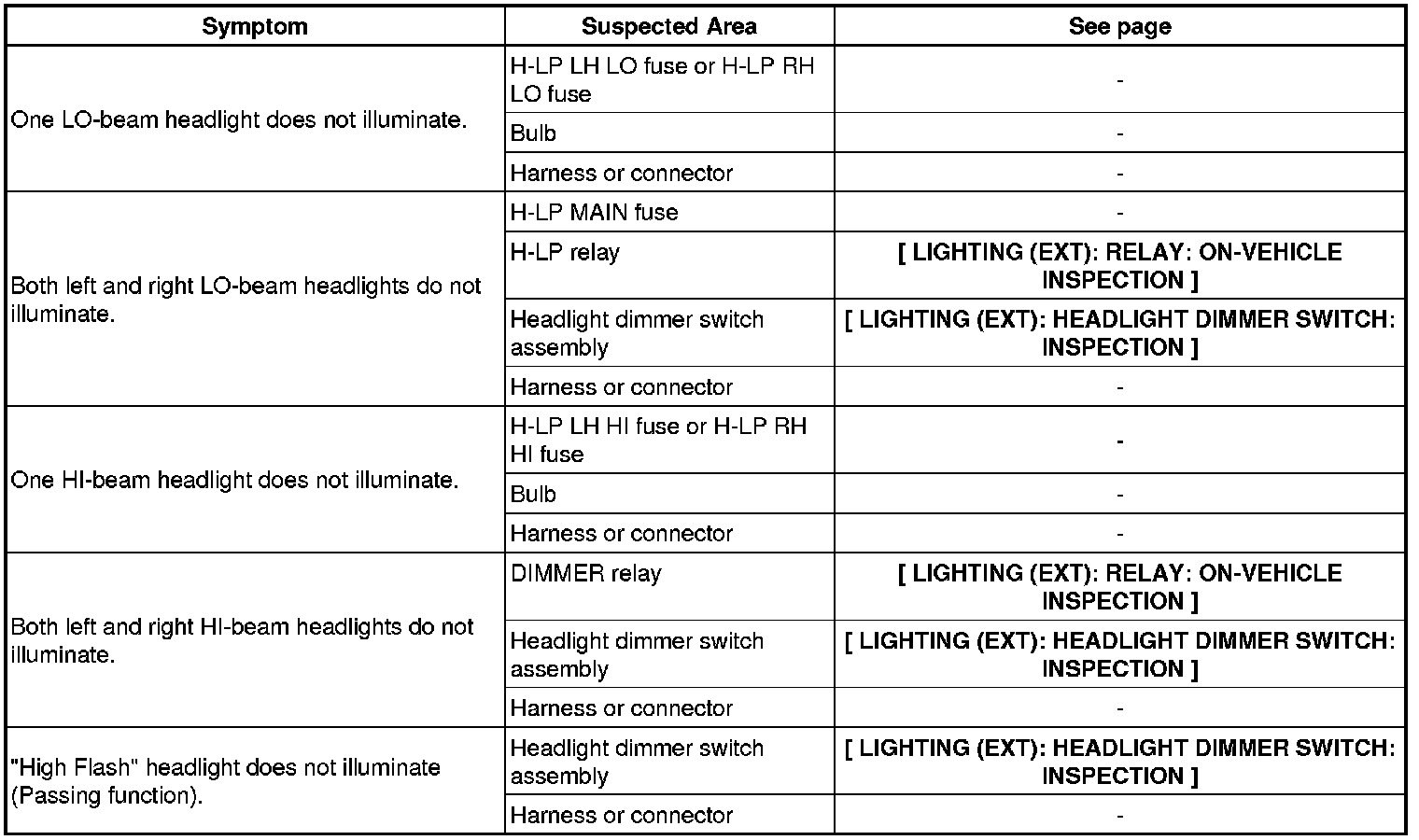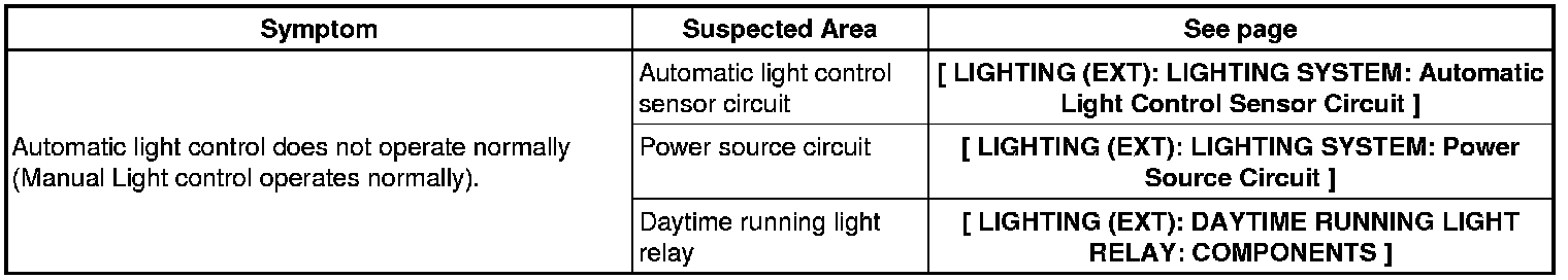 LIGHTING (EXT): LIGHTING SYSTEM: PROBLEM SYMPTOMS TABLE