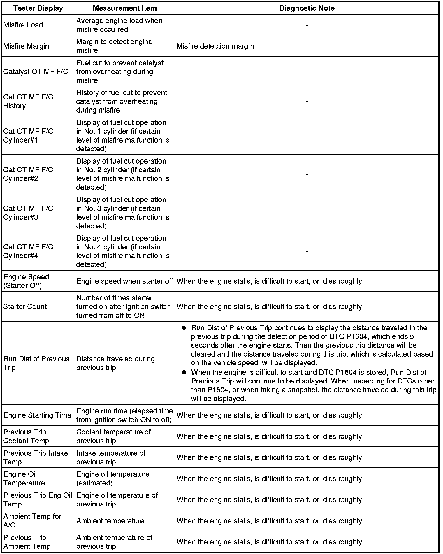 * These data sets can be used to simulate the condition of the vehicle around the time of the occurrence the malfunction. The data may assist in identifying the cause of the malfunction, and judging whether it was temporary or not.