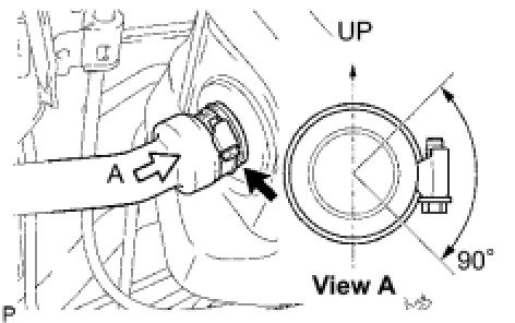 (a) Install the fuel tank vent hose onto the fuel tank clamp.