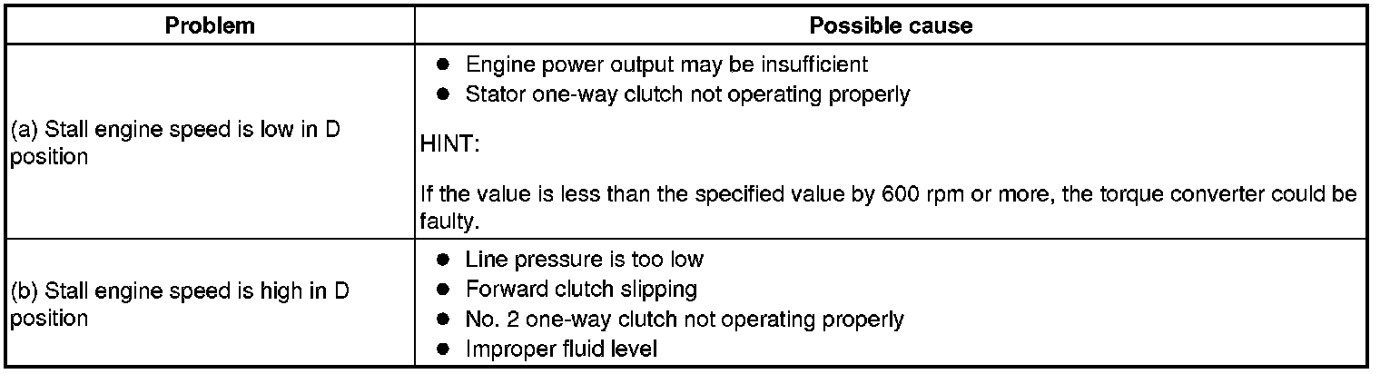 The object of this test is to check the overall performance of the transaxle and engine by measuring the stall speeds in the D position.