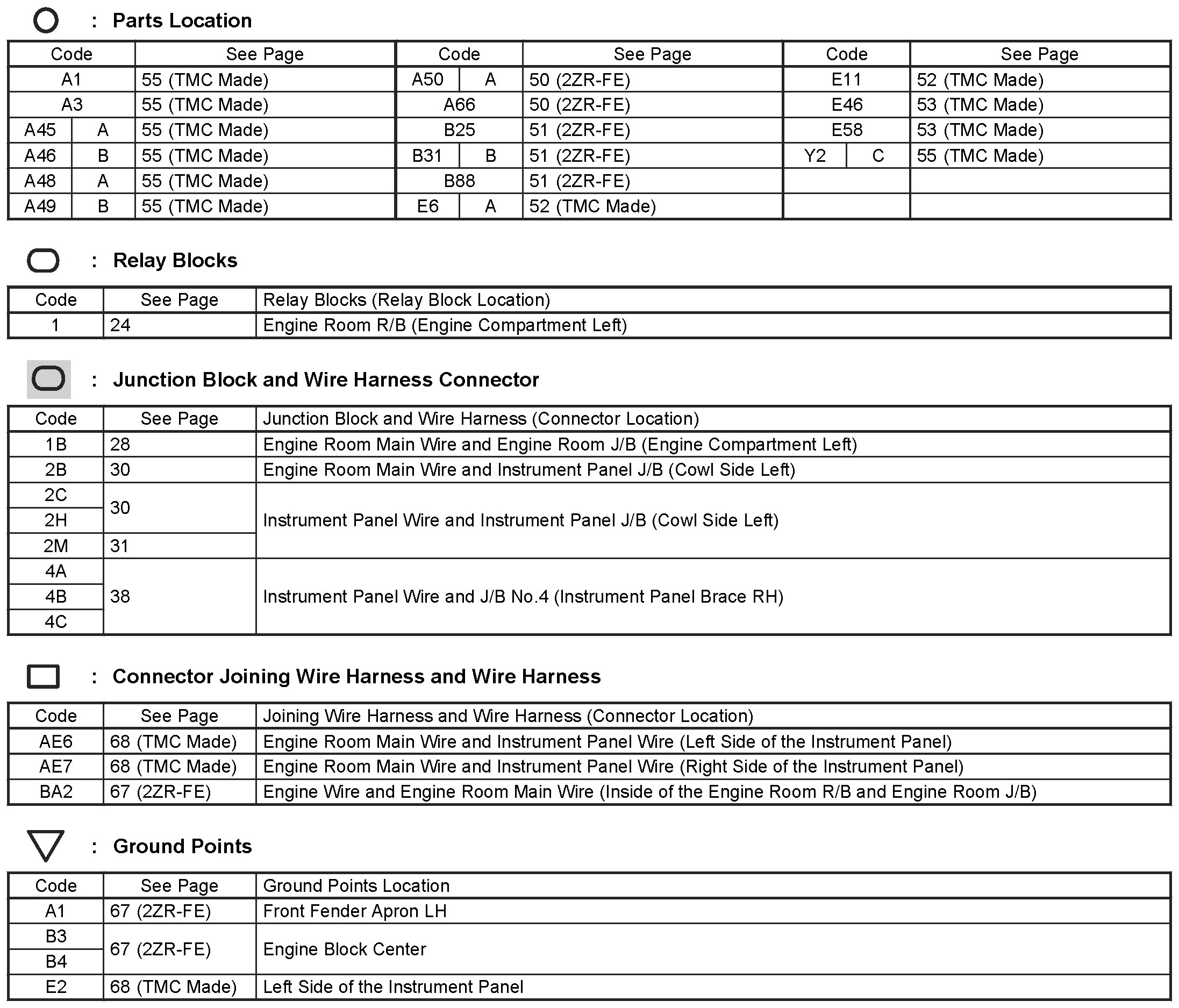 Locations: The locations of components, connectors, ground points, and splices referred to within these diagrams can be found at Vehicle Locations. Locations