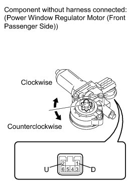 4. INSPECT POWER WINDOW REGULATOR MOTOR ASSEMBLY (FRONT PASSENGER SIDE)