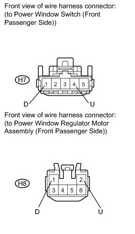 (a) Disconnect the power window regulator motor assembly (front passenger side) connector.