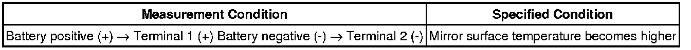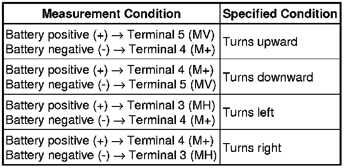 (1) Apply battery voltage and check operation of the mirror face, as shown in the table below.