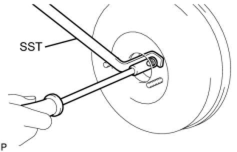 (d) If the clearance is not as specified, adjust the push rod length by holding the rod using SST and turning the tip of the rod using a socket driver (7 mm).