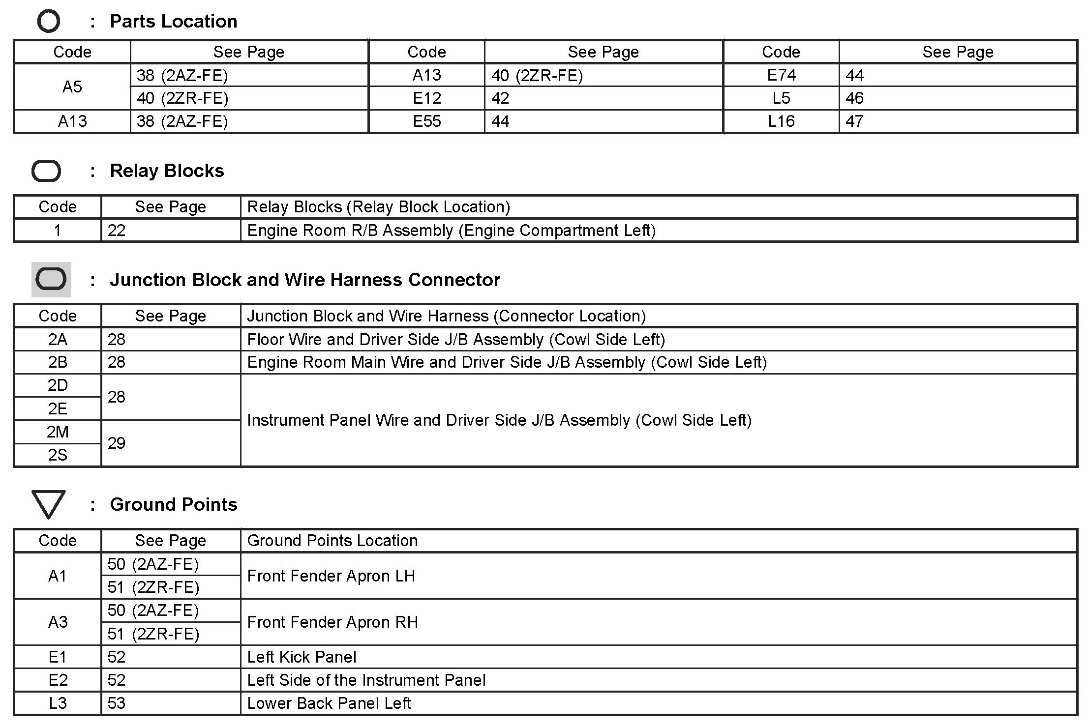 Locations: The locations of components, connectors, ground points, and splices referred to within these diagrams can be found at Vehicle Locations. Locations