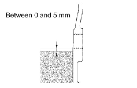 (b) Check that the oil level is between 0 and 5 mm (0 and 0.197 in.) from the bottom lip of the differential carrier cover plug opening.