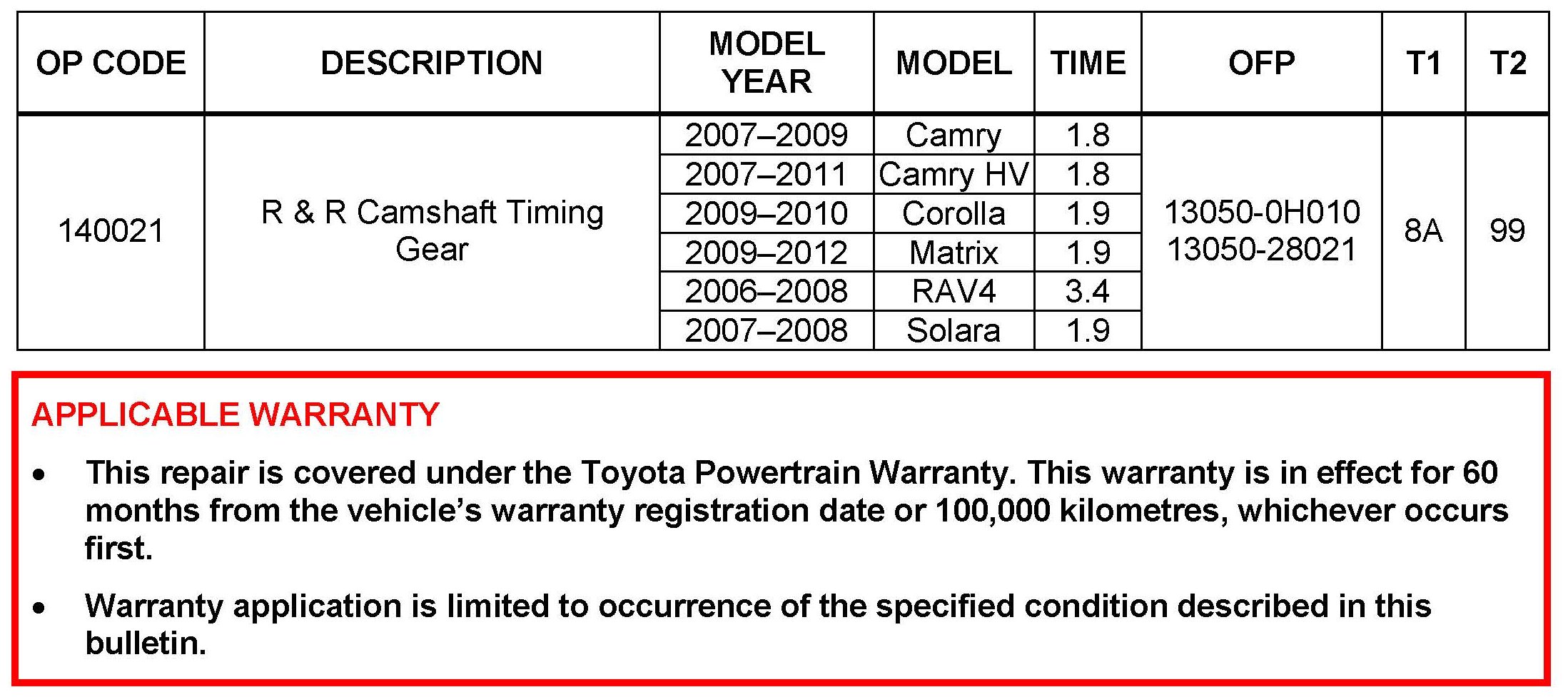 Some 2006 - 2012 model year vehicles equipped with the 2AZ-FE engine may exhibit an intermittent MIL "ON" condition with Diagnostic Trouble Code (DTC) P0335 (Crankshaft Position Sensor "A" Circuit) stored The intake camshaft gear assembly has been improved to help prevent this condition.