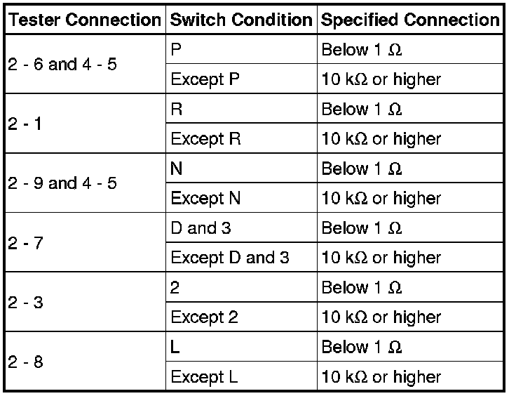 U140F AUTOMATIC TRANSMISSION / TRANSAXLE: PARK / NEUTRAL POSITION SWITCH: INSPECTION