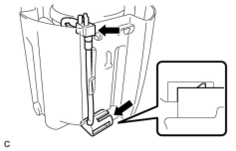 (b) Remove the E-ring and separate the 2 claws, then remove the fuel pump sub-tank.