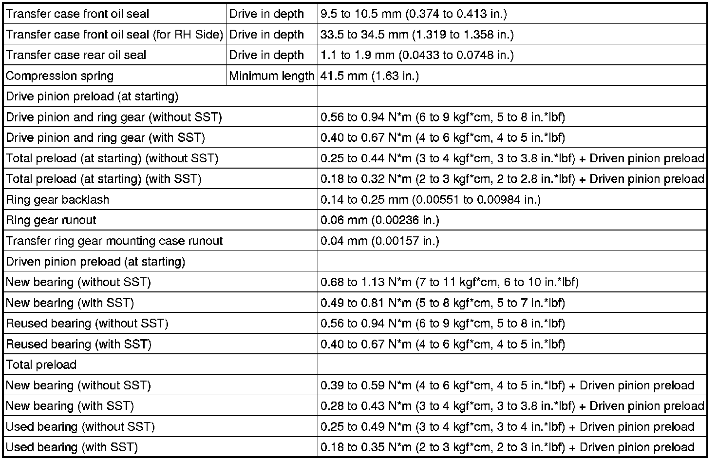SPECIFICATIONS: MF1A TRANSFER / 4WD / AWD: SERVICE DATA