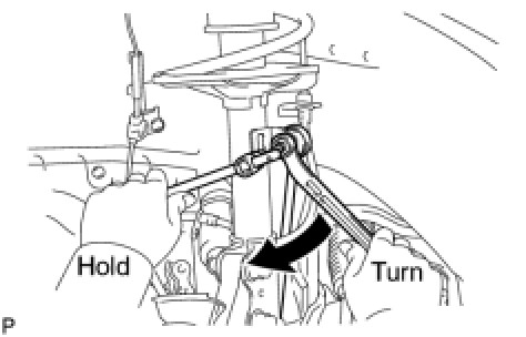 If the ball joint turns together with the nut, use a hexagon wrench (6 mm) to hold the stud bolt.