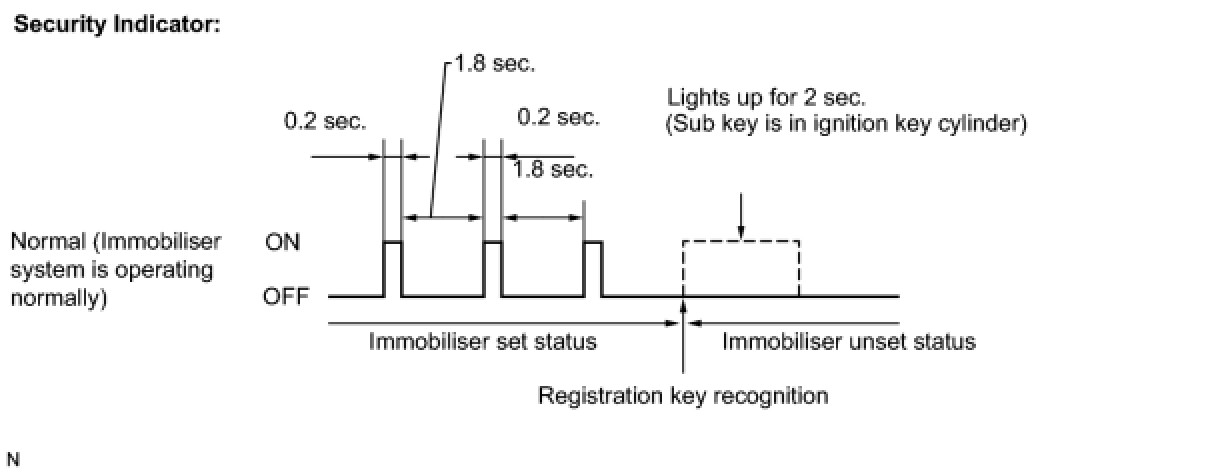 (b) The security indicator pattern is as shown below (when changing from immobiliser set status to unset status):