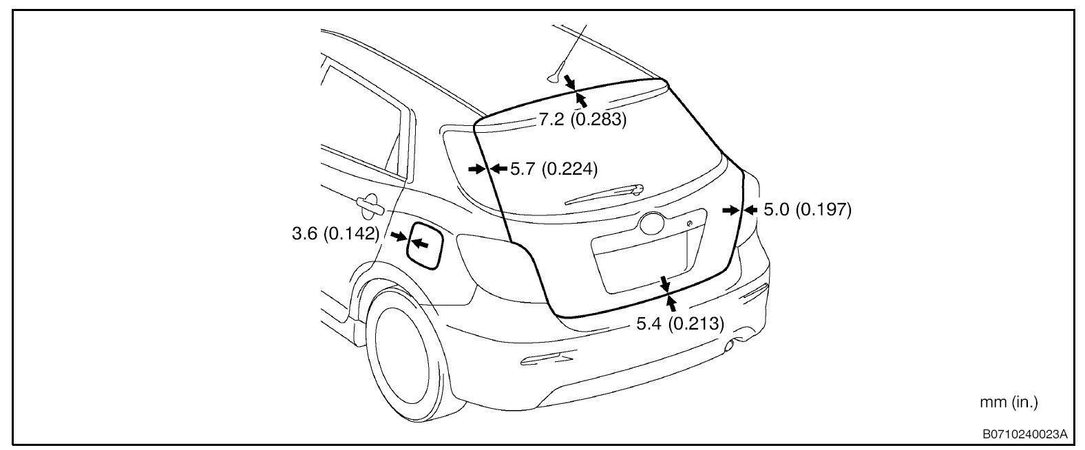 CAUTION: Before adjusting the door positions of vehicles equipped with side airbags and curtain shield airbags, be sure to disconnect the battery. After adjustment, inspect the SRS warning light, the side airbag system, and the curtain shield airbag system for normal operation. Then initialize both airbag systems.